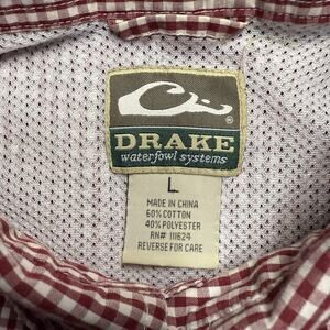 Drake Waterfowl Systems Vented Shirt Mens Large Red Check Roll Tab Outdoor