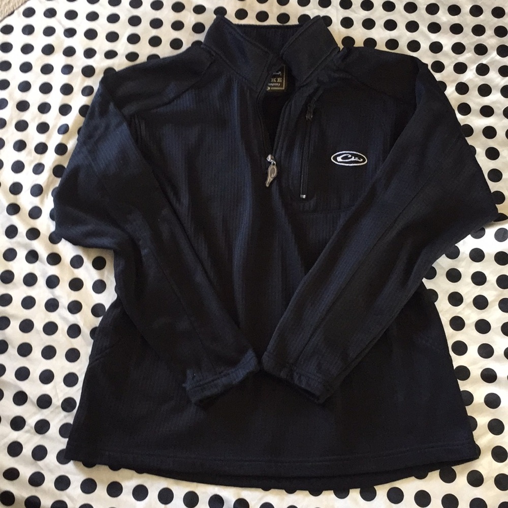 Black Drake 1/4 zip pullover. Has light peeling from being washed, no rips or stains.