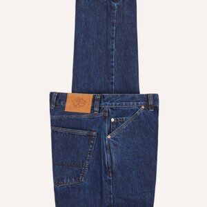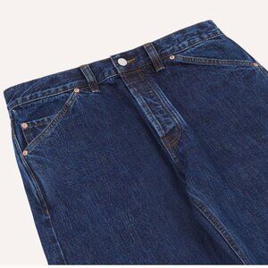 Cut with a slightly higher rise and a relaxed, tapered fit, the jeans are finished with copper rivets and a unique slanted pocket design.