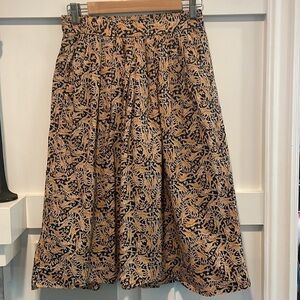 Located on Haberdasher Street in London, Drake's has been handcrafting scarves and ties since 1977. This skirt has a flattering silhouette and an easy elastic waist. Cotton. Elastic waistband. Pockets Pleating Falls below the knee. Excellent condition size 0 but runs generous. I am a Medium usually. I also have matching top available.
