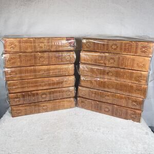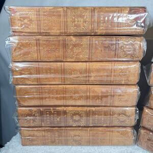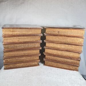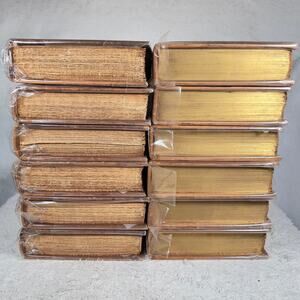 In Fair to Good Antique Preowned Condition. The books were covered in plastic book covers at some point in their past. (Nothing is physically attached to the book it self. ) some of the leather is crumbling or flaked away. Some of the bindings are loose but they are all intact.