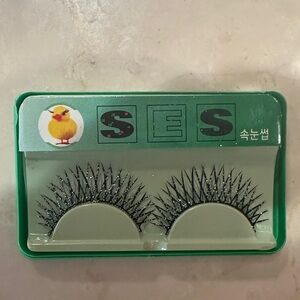 Various types of fake lashes from Korea, some with sparkles, some with reflective lashes, and one set with colorful feathering. Completely new and comes with covers for each set.