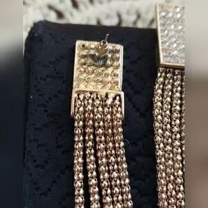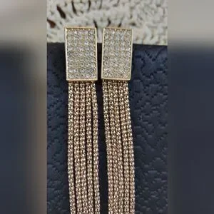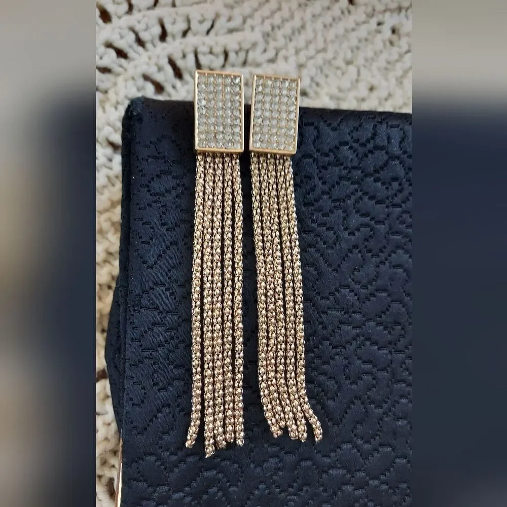 Dramatic Gold Rhinestone & Chain Dangle Earrings
