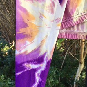 These High performance, NWT, yoga leggings are strong & made well! Their lightening design is a beautiful combination of peach, white ,& purples! They are perfect for exercising, & also with a tunic, & boots, for everyday! Whether at the gym, farmers market or the mall, these leggings will add flair. They are 95% polyester,& 5% spandex, so they will keep their shape & are easy care! You will not begrudge the expense, because you will find you will wear them everywhere! This color scheme is rare