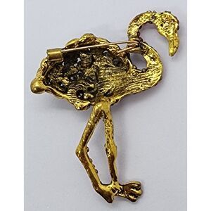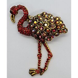 Dramatic Red Flamingo Rhinestones on Gold Tone Metal Tropical Bird