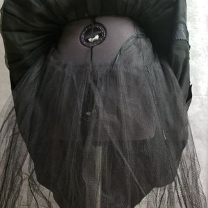 A cross between Morticia and Grace Kelly, this classic black dress is ideal for all formal occasions. Wedding? Prom? Tuesday? Don't pretend like you don't want to look like a cross between Morticia and Grace Kelly! Vintage lace at neck and roses at the hem.
