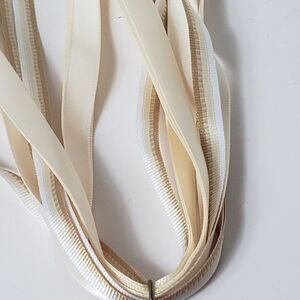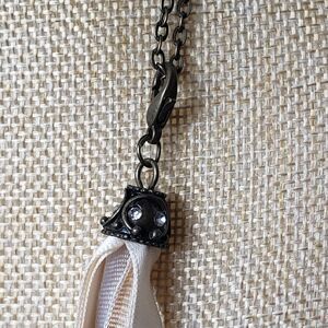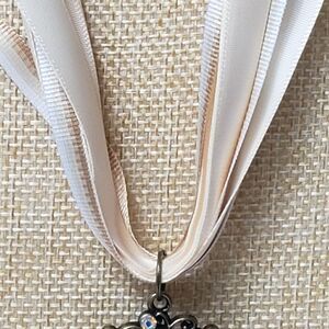 Both ends have lobster claw clasps so this ribbon Necklace can be made longer by attaching one of your own chains.