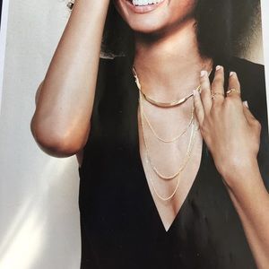 Collar necklace current favorite trend. Delicate yet dramatic chains cascade from a shiny gold collar. Shiny gold plating. Never worn with original box.