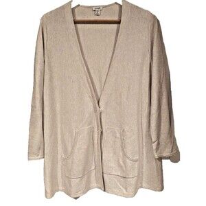 Keywords: cardigan, sweater, knit, drape front, pockets, casual, comfy, neutral, beige, lightweight, medium, eastwill, versatile, layering