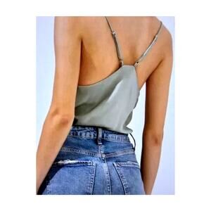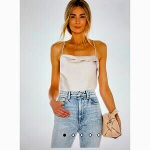 Drape Front Satin Cami V Back Astr The Label Bodysuit Champagne size S