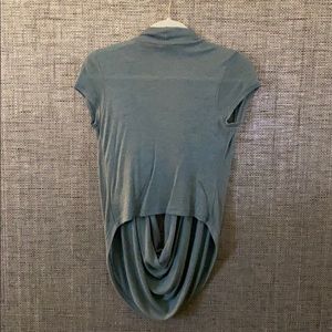 This is a blue gray drape top. It is thin material that is to be worn over an inside shirt. Great condition.