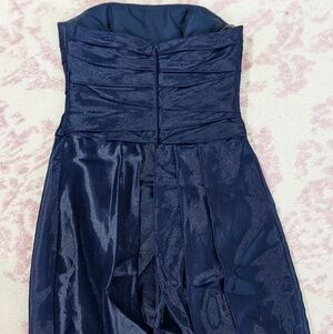 Picturing the Draped Bodice Ruched Strapless Cocktail Dress in Rich Navy by White by Vera Wang.