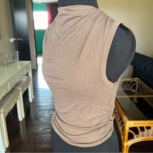 NIB new in bag draped collar ruched tank top in coffee brown color.