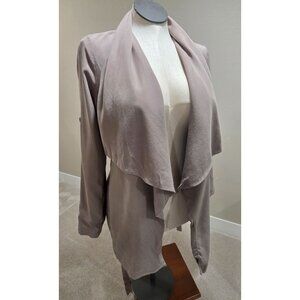 Draped Shawl Collar Taupe Open-Front Long Sleeve Jacket