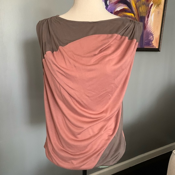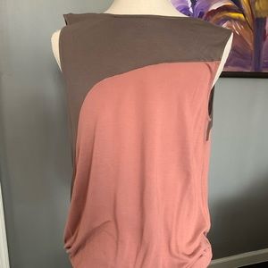 Rose and brown colored tank shell. Elastic bottom hem. Looks great beneath a blazer or alone.