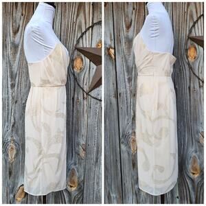 Draped Wrap Dress Free People Size 12 Cream Gold Mesh Sweetheart Sleeveless