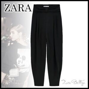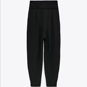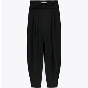 High-waist trousers with draped detail at the waist. Featuring darts at the front and hems and an invisible side zip fastening