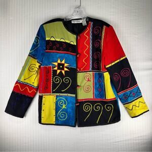 Draper & Damon’s Colorful Artsy Embroidered Patchwork Blazer Jacket Size Small