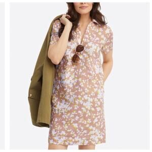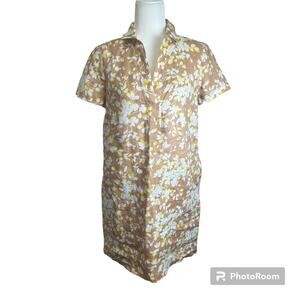 Draper James 100% Linen Mini Slip-Dress Women’s 2 Floral Biege Yellow Collared Short Sleeve. In excellent pre-owned condition.
