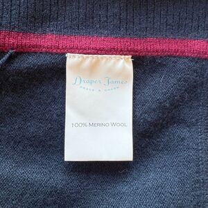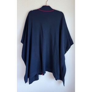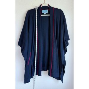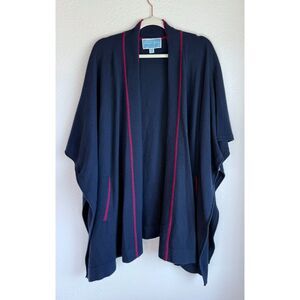 Draper James 100% Wool Cora Cape Open Cardigan in Nassau Navy & Maroon Red Trim