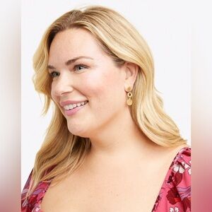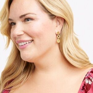 Draper James 12K Shiny Gold Plated Brass Hammered Disc Drop Earrings