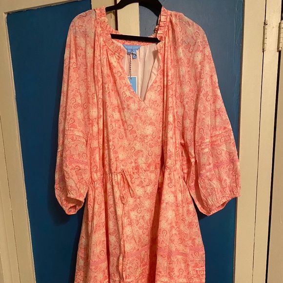NWT pink dress. Pretty pink color with pretty floral pattern. Flattering v neck. Light and comfortable. Smoke free , hypoallergenic dog friendly home.
