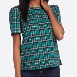 Draper James Angie Puff Sleeve Top Green Plaid Check. Size 4 (S). Excellent preowned condition.