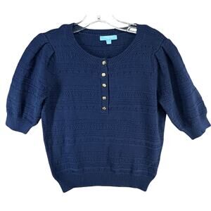 Draper James Henley Sweater Womens Size S Navy Blue Puff Short Sleeve Knitwear Casual