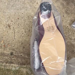 new without tags Soft square toe Leather stack heel Tubular island heel Staggered edge topline Branded metal zipper puller Inside zipper closure Scalloped edge sock Memory foam sock padding 2in Heel