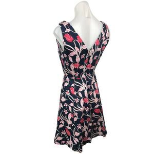Draper James Black Pink Floral V Neck Sleeveless Fit & Flare A Line Mini Dress 0