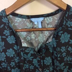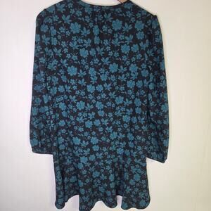 Draper James Blue And Dark Brown Floral Long Sleeve Mini Dress Size Small
