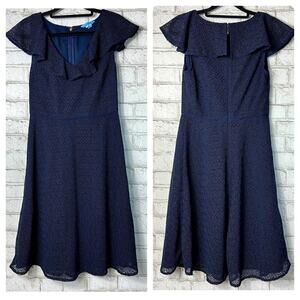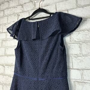 Draper James Blue Dress Heart Lace Flounce Shoulder Ruffle A-Line Knee Length 2