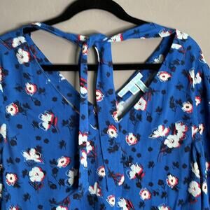 Draper James Blue Floral Flowy Blouse Tied Neckline Size 4