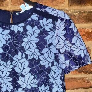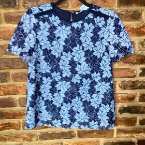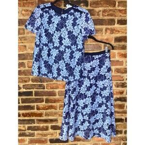 Draper James Blue Floral Lace Short Sleeve Blouse Midi Skirt Set Women's Size 6