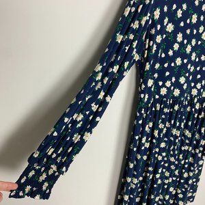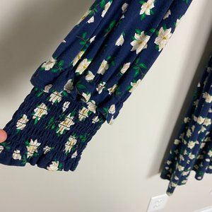 Charming blue midi dress with floral pattern. Long sleeves. Perfect for casual outings.
