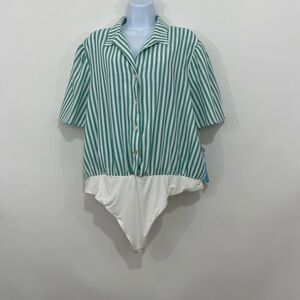 Draper James Blue Green Striped Short Sleeve Bodysuit