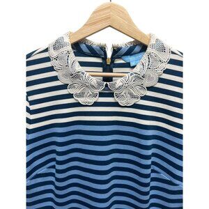 Draper James Blue Striped Lace Collar A-Line Knit Dress