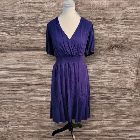 Draper James Blue/Purple Short Sleeve Dress with Smocked Waste, Medium, NWOT