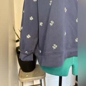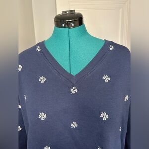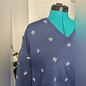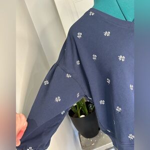 Draper James Bobbie Embroidered Sweatshirt navy white flowers 2X