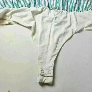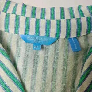 Draper James Button Front Striped Linen Bodysuit Collared Size XL