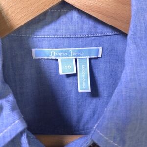 Draper James Chambray Button Down Western Blouse Size 10 Rolled Cuff Coastal