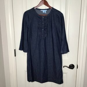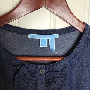 We took two of our favorite things—chambray and flirty ruffles—and combined them in our new Chambray Ruffle Shift Dress. It's a piece we love for casual occasions when you still want to look pulled together and feminine. Pair it with flats or heels and your fave jewelry and enjoy the compliments!