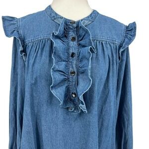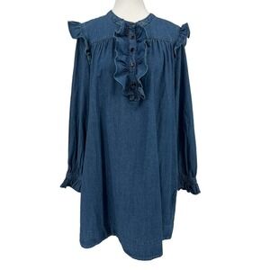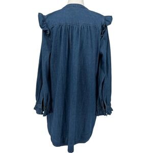 Draper James Chambray Ruffle Shirt Dress Medium Wash Denim Large