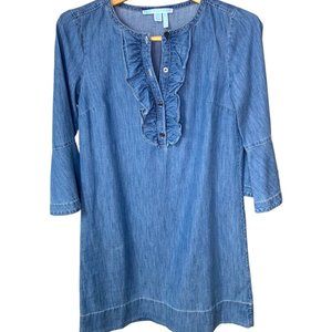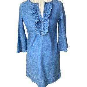 Draper James Chambray Ruffled Shirt Dress Size 0.