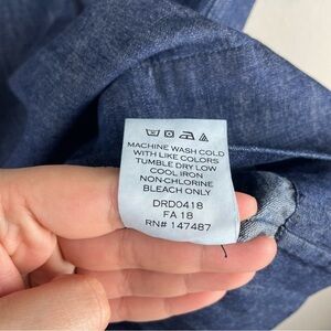 Draper James Dark Wash Chambray Ruffle 3/4 Sleeves Shift Dress