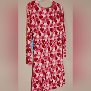 Long sleeve, faux wrap with a ruffle at the bottom. There is a tie to one side. Approximately 19" from armpit to armpit. Approximately 22.5" from waist line to hem of the skirt. New with tags. No rips, tears or stains. Smoke free/Dog friendly home