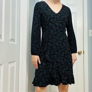 Draper James Dress Mini Long Sleeve Floral Black Green Dainty Work 4 Small