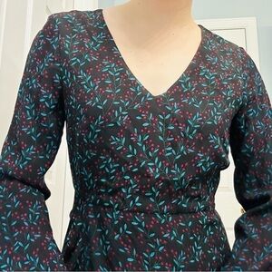 Draper James Dress Mini Long Sleeve Floral Black Green Dainty Work 4 Small
