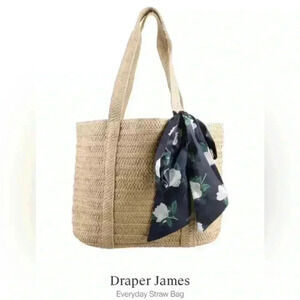 Draper James Everyday Straw Bag Tote Purse with Scarf Bow Travel Beach Preppy