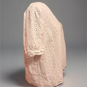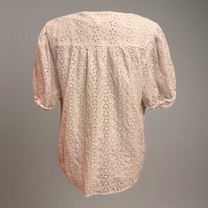 Draper James Eyelet Blouse XL Cottagecore Prairie Coastal Top Puff Sleeve